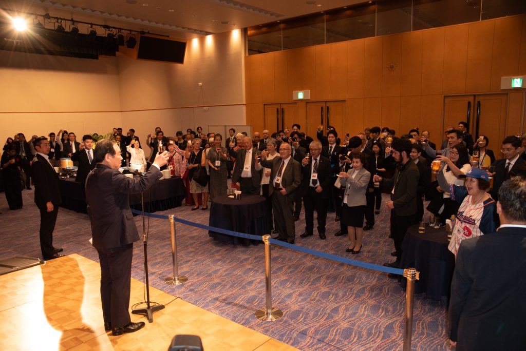 その後、衆参両議院議長主催の歓迎昼食会が行われ、関口昌一参議院議長、額賀福志郎衆議院議長をはじめ多数の国会議員が参加し、参加者と懇談しました。